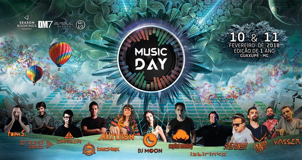MUSIC DAY – 10 e 11 de Fevereiro Sítio Santo Antônio | GUAXUPÉ – MG | Rodovia BR 491, Km 74 – Estrada Guaxupé/Guaranésia. “Preferimos a música eletrônica, pois, ela houve o meu silêncio e ainda o traduz sem que eu possa me explicar.” Sejam todos bem-vindos a mais uma edição da Music Day! INFOS: Patrick | Fone: (35) 9.9865-5162 – Lote Promocional – R$ 50,00 (Enquanto durar os estoques) 1° Lote – R$ 60 – 2º Lote – R$ 70 ou pacote 5 ingressos + 5 vagas na excursão por R$ 750.