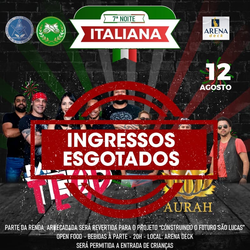 7ª NOITE ITALIANA realizada pela Família Maçônica e Fraternidade Feminina no Arena Deck com parte da renda arrecada revertida para o PROJETO CONSTRUINDO FUTURO