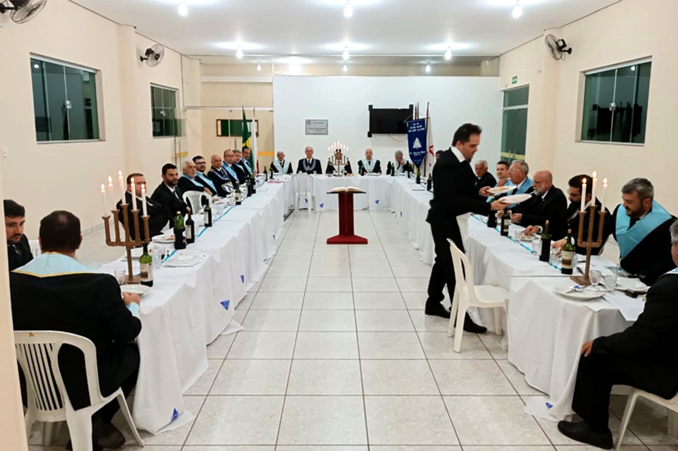 Deslize para ver fotos do Jantar Ritualístico em Comemoração do Solstício de Inverno, Comemoração de Solstício de Verão realizada no campo à noite, Fraternas de Itaú, Demolays e 3 gerações de maçons na família.