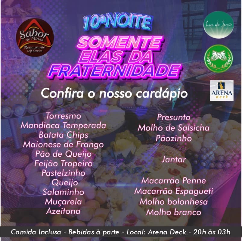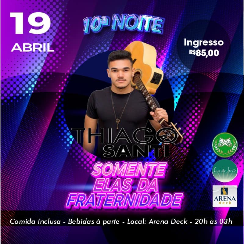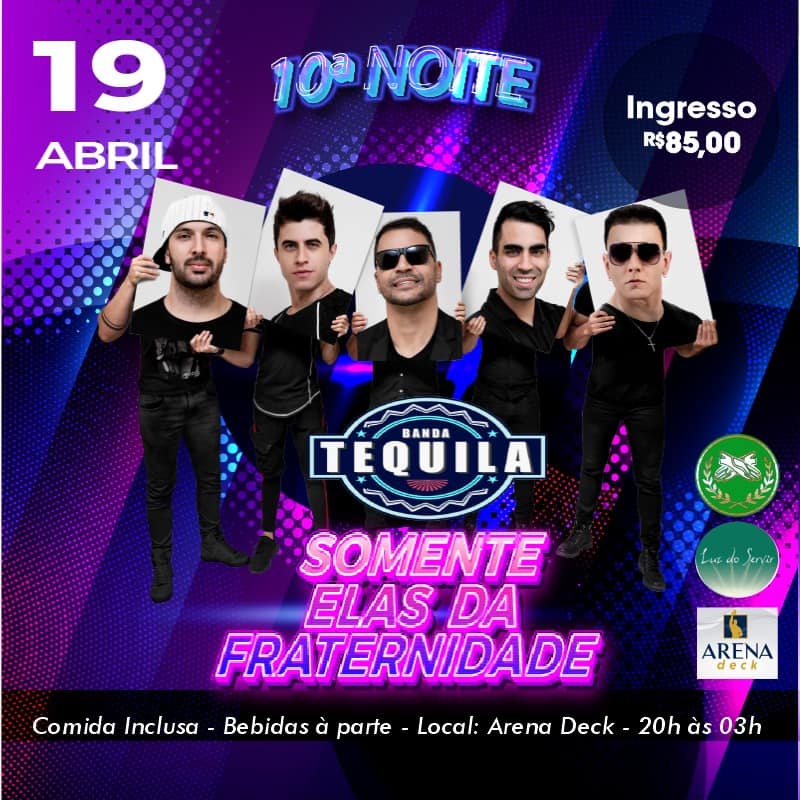Vem aí a 10ª NOITE SOMENTE ELAS no Arena Deck dia 19 de abril com Banda Tequila e Thiago Santi. Convites R$85 com as Fraternas. ÚLTIMAS UNIDADES!