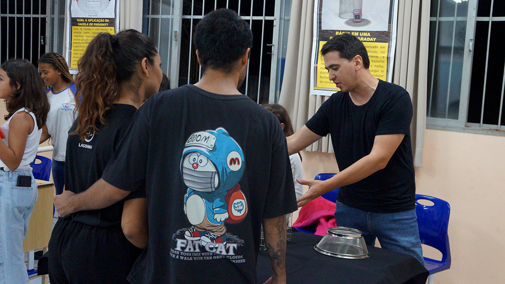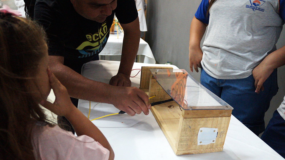 Fica aqui nossas saudações ao Pedro, à Escola e toda a equipe. Como prêmio uma bala chita por ter completado um circuito elétrico com uma argola sem encostar nas laterais o que causaria um sinal caso acontecesse. Caminho completado com sucesso na 1ª tentativa! Aguarde BOLETIMM#25 e fique com gente no site! Confira outras publicações na página inicial. Para finalizar uma mensagem da lembrança do 7º ano Laranja com sementes de girassóis.